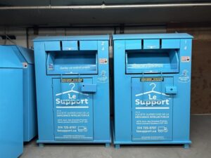Le Support est un pionnier québécois dans la collecte de fonds par la vente d’articles usagés, avec plus de 225 boîtes de dons réparties dans le Grand Montréal. Pour renforcer cet impact, S3R a pris l’initiative d’installer des boîtes supplémentaires chez ses clients entreprises.